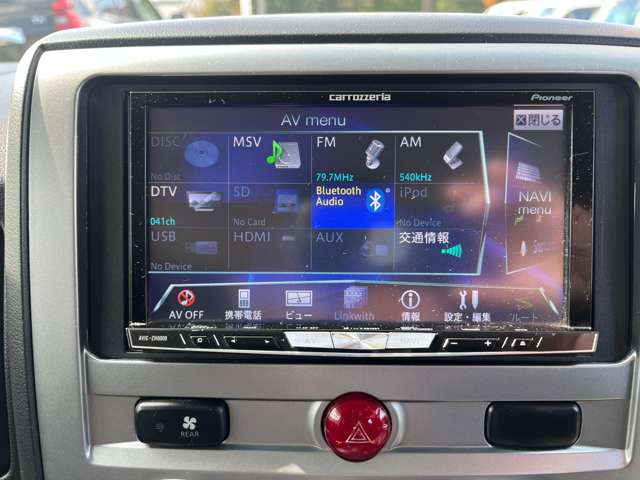 インテリアにつきましては、エアバッグ(運転席/助手席)・Wエアコン・クルーズコントロール・HDDナビ・スマートキー・シートヒーター・後席モニター・ETC・盗難防止装置など装備で、HDDナビは、バックカメラ・フルセグTV・DVD/CDメディア/ミュージックサーバー対応で、ミュージックプレイヤーも接続可能です。